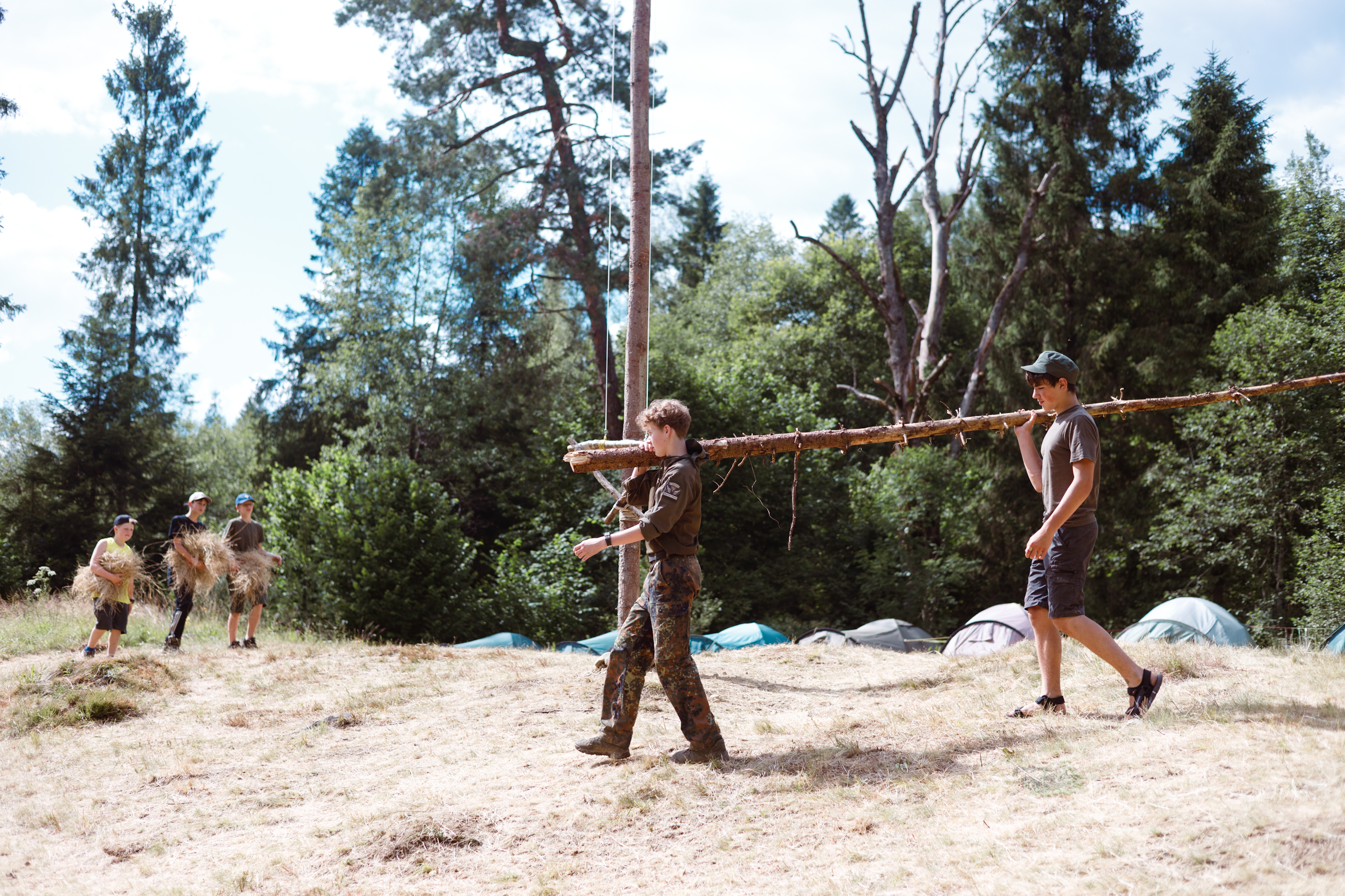 Обов’язки мають бути розподілені: дівчата роблять весільну арку та Морену, а хлопці готують ватру та створюють Купайла. [Довідка - Морена та Купайло – це фігури дівчини та хлопця, зроблені з соломи та підручних матеріалів. Їх ховають на терені табору].