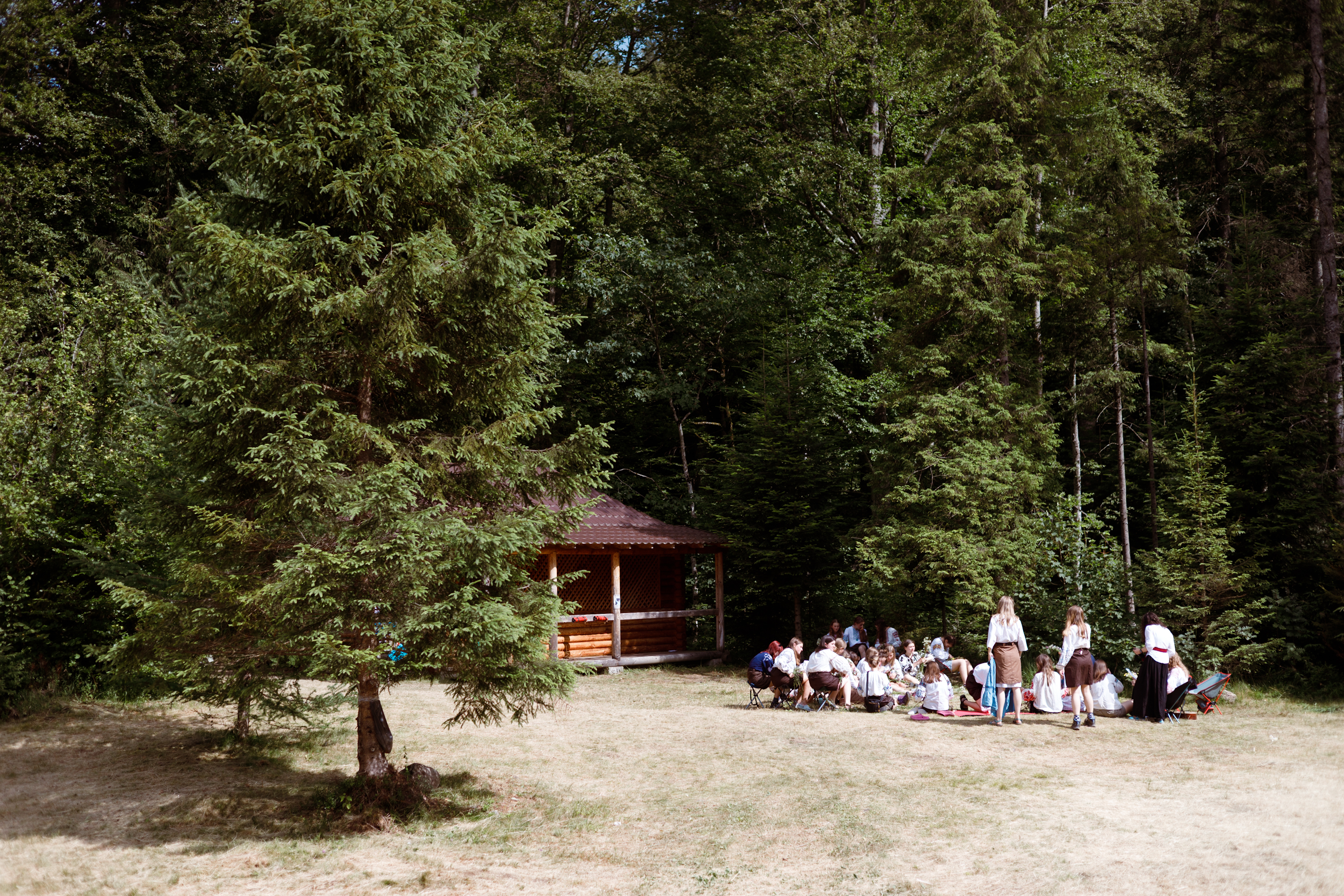 Цьогоріч нам вдалося побувати в гостях на таборах у куренів “Горошки” та “Басарабки”. Потрапили якраз на святкування весілля. Тож розповімо трошки більше про те, як усе відбувалося. Поспілкувалися з комендантом табору куреня "Горошки" Олегом Каднічанським і заступницею комендантки з програми - Меланією Гайдучок, з куреня " Басарабки".